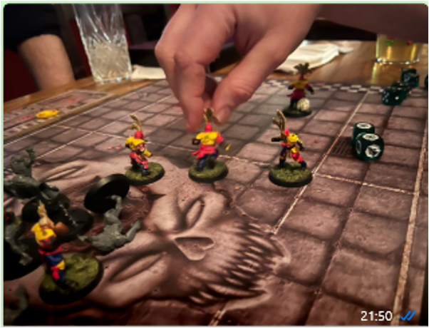 The Necros kicked off, and the kick-off event was ‘Brilliant coaching’ El G gets a re roll ( He later tries to get this upgraded to one per half but was fortunately kept in check and had it limited to just the 1!!)