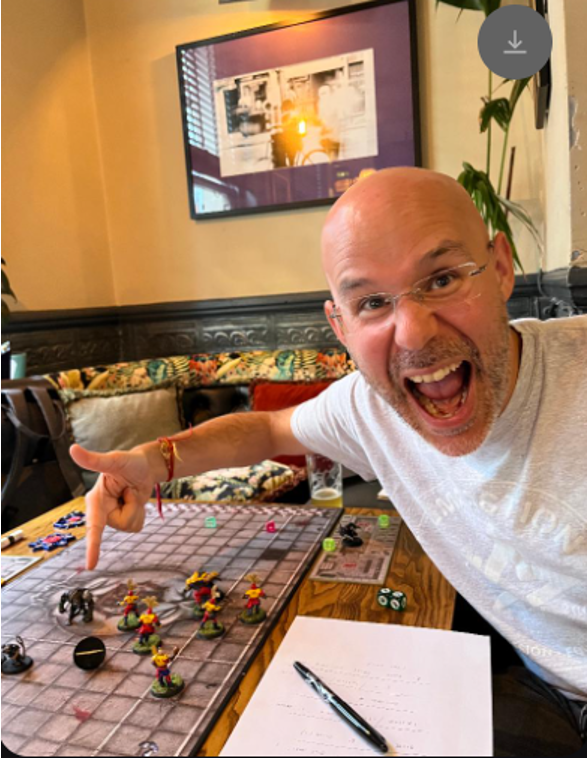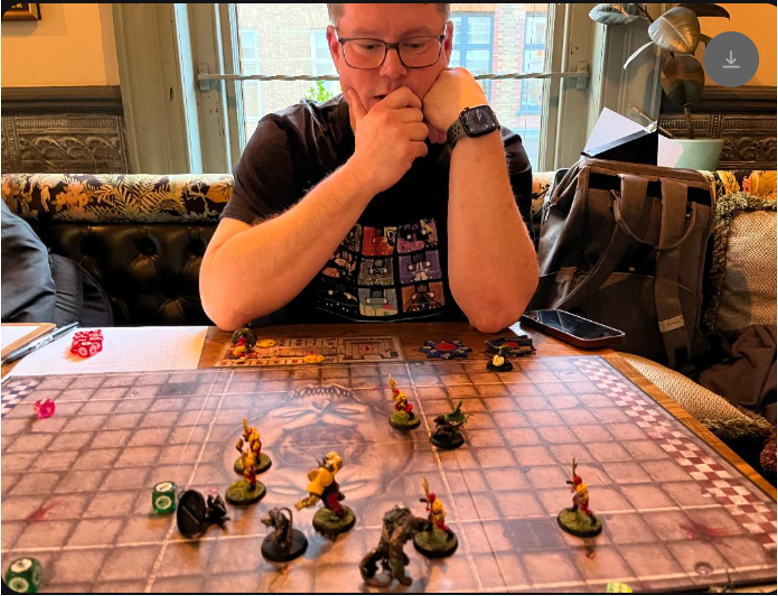The Werewolf carrier (whistler) gets knocked down by thrower, but Andru the Ogre rolls double skulls and falls over ‘d’oh!!’