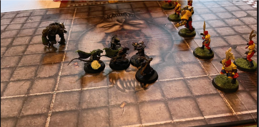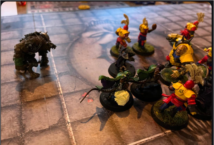 El Golfo’s turn 2 pushes the werewolf up the pitch push back imperial linemen but they have fend so no following up on a push.