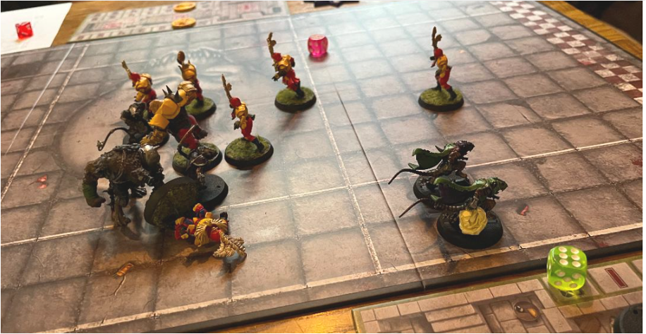 The tide turns quickly and with a Werewolf down v lineman, turn 3 for El G leads his Blitzer to run for the line and with no-one to oppose him, he strolls in for 2-0, that’s a wrap as they almost call for last orders