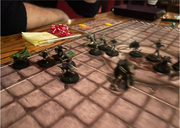 The Necros kicked off, and the kick-off event was ‘Brilliant coaching’ El G gets a re roll ( He later tries to get this upgraded to one per half but was fortunately kept in check and had it limited to just the 1!!)
